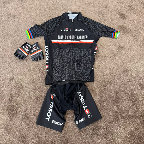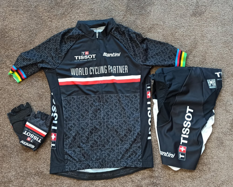 - kompletní cyklistický dres* TISSOT včetně cyklorukavic*, trička* a kalhot*