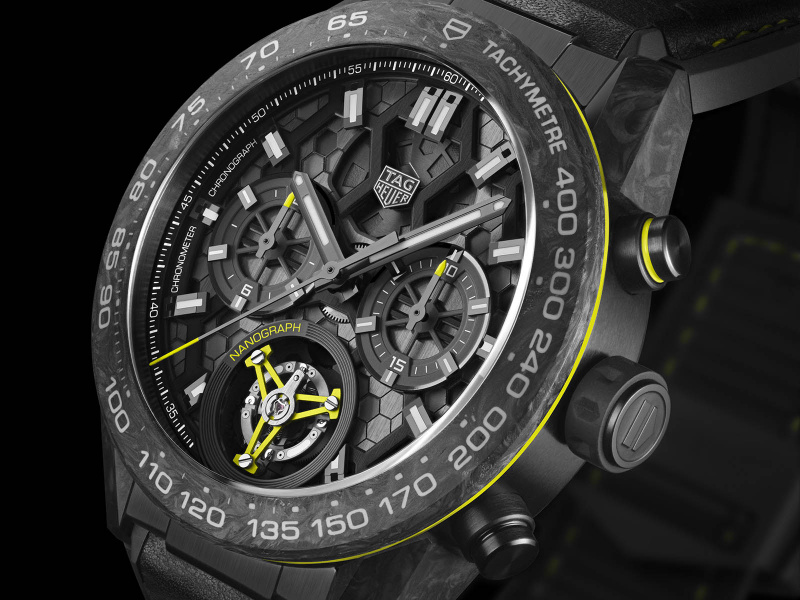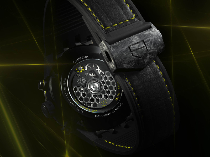TAG Heuer Carrera Calibre Heuer 02T CAR5A8K.FT6172 má velikost pouzdra větší, jak je již zvykem, a to 45 mm. Pouzdro je vyrobeno z titanu a luneta s tachymetrickou stupnicí z karbonu. 3D číselník, který je poskládám ve třech vrstvách je kryt safírovým sklíčkem s oboustrannou antireflexní vrstvou. Hodinky mají funkci chronografu s maximální dobou chodu 12 hodin. Na ručkách a indexech je nanesena vrstava SuperLuminova®, která zajišťuje zřetelné odečítání času i za snížených světelných podmínek. Vodotěsnost hodinek je 100M, takže jsou vhodné pro koupání. Řemínek hodinek je vyroben z pryže a telecí kůže a je doplněn o žluté prošití. Jelikož je spodní část řemínku pryžová, zajišťuje tak delší životnost řemínku. Řemínek zakončuje bezpečnostní překlápěcí spona z titanu s povrchovou úpravou PVD.