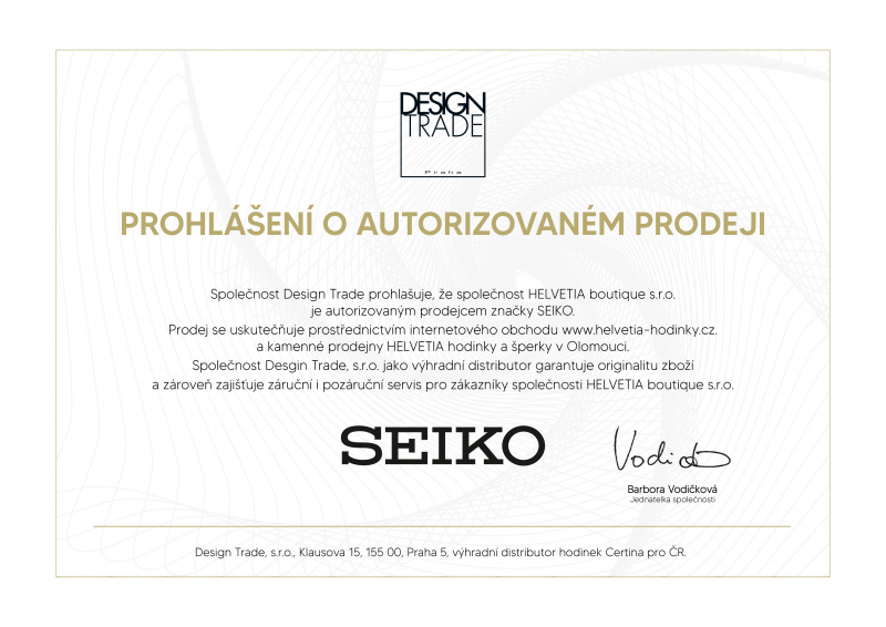 Autorizovaní prodejci poskytují autorizovaný servis. Záruční i pozáruční. S každými hodinkami vám předáme garanční kartu výrobce. Ta vám otevře dveře do oficiálního servisního střediska, kde se o vše postarají. Bez ní může opravu odmítnout, případně ji provede na vaše náklady.