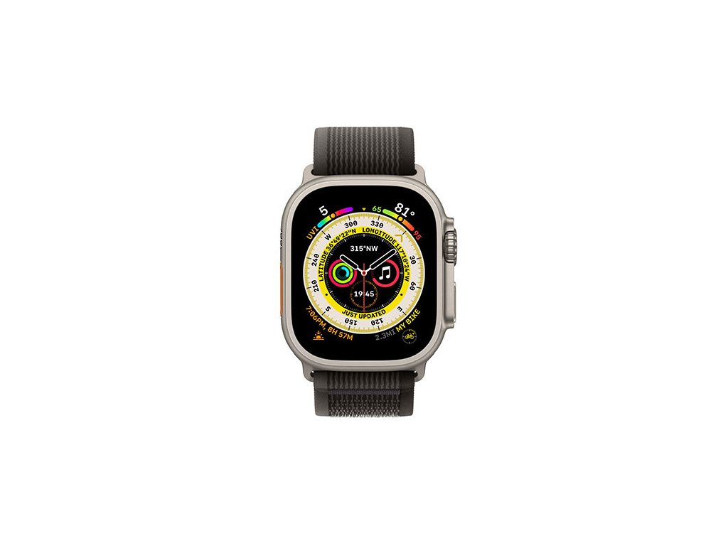 Apple Watch Ultra GPS + Cellular, 49mm titanové pouzdro s černo-šedým trailovým tahem - M/L MQFX3CS/A