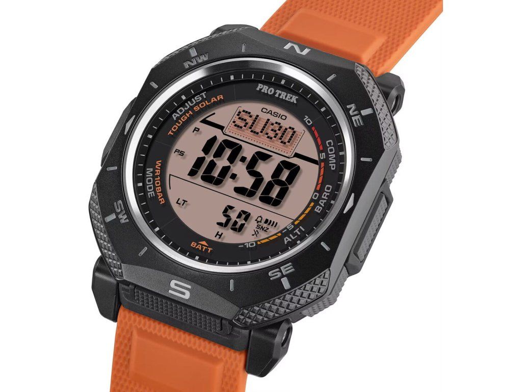 | Funkce: | Automatický kalendář, Barometr, Budík / Alarm, Kompas, Odpočítávací stopky, Osvětlení, Stopky / Chronograf, Světové časy, Teploměr, Výškoměr |