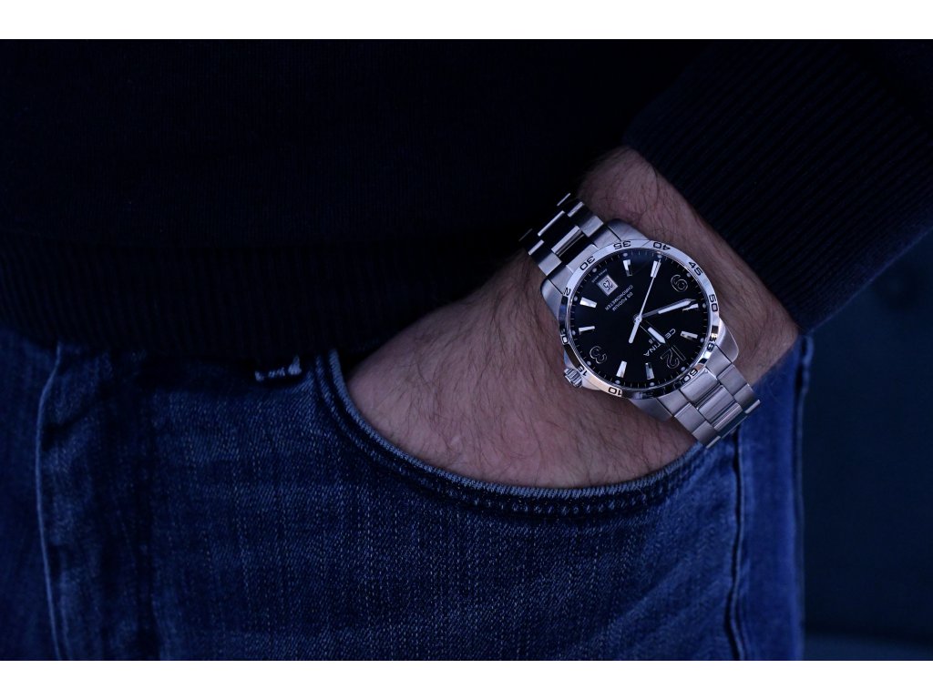 Quartzový strojek ETA F07.412 Precidrive s COSC certifikací zaručuje přesnost chodu strojku ± 10 sekund za rok a neuvěřitelných +-0,07 vteřin za den! Funkce EOL zase indikuje slabou baterii. Vodotěsnost modelu je 100 M a s hodinkami můžete jít v klidu plavat.