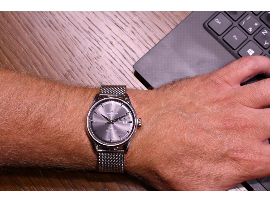 Krásné pánské automatické hodinky švýcarské výroby od značky Certina DS-1 z řady Urban zaujmou především svým sportovně elegantním vzhledem a oblíbí si je každý moderní muž. Pouzdro o průměru 40 mm nabízí vypouklé safírové sklíčko odolné vůči poškrábání s jednostrannou antireflexní vrstvou pro lepší čitelnost na ostrém slunci. Na přehledném šedém ciferníku najdete ukazatel data na pozici čísla "3" a stříbrné ručky a indexy. Vodotěsnost modelu je 100 M a můžete tak jít s hodinkami i plavat. Tento model má navíc vyměnitelný textilní řemínek šedé barvy se systémem Quick Release.