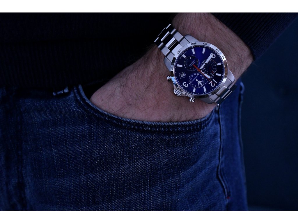 | Funkce: | Datum, Duální čas / GMT, Stopky / Chronograf, Tachymetr |