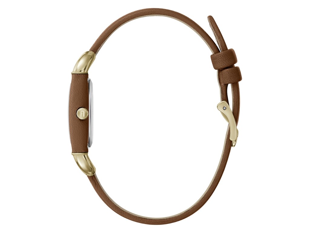 Krásné dámské módní hodinky italské výroby od značky Furla jsou vyrobeny z ušlechtilé oceli s PVD úpravou v barvě žlutého zlata. Hodinky mají hranaté hnědé pouzdro a svým průměrem 28 mm se řadí mezi středně velké dámské modely. Přehledný bílý ciferník nabízí klasický čas a je krytý minerálním sklíčkem. Celkový vzhled hodinek doplňuje hnědý kožený řemínek s klasickou sponou. Vodotěsnost hodinek 50 M splňuje běžný styk s vodou jako je umývání rukou a déšť.