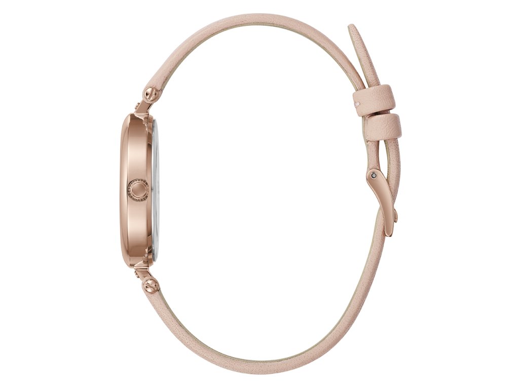 Krásné dámské módní hodinky z italské výroby od značky Furla jsou vyrobeny z ušlechtilé oceli s PVD úpravou v barvě růžového zlata. Pouzdro má výraznější lunetu a svým průměrem 32 mm se řadí mezi středně velké dámské modely. Strukturovaný číselník v růžovém tónu nabízí klasický čas a je krytý minerálním sklíčkem. Celkový vzhled hodinek doplňuje kožený světle růžový řemínek s klasickou sponou. Vodotěsnost hodinek je 50 M snesou tak běžný styk s vodou a déšť.