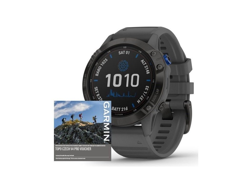 - Hodinky fenix6 PRO solar s tmavě šedým silikonovým řemínkem