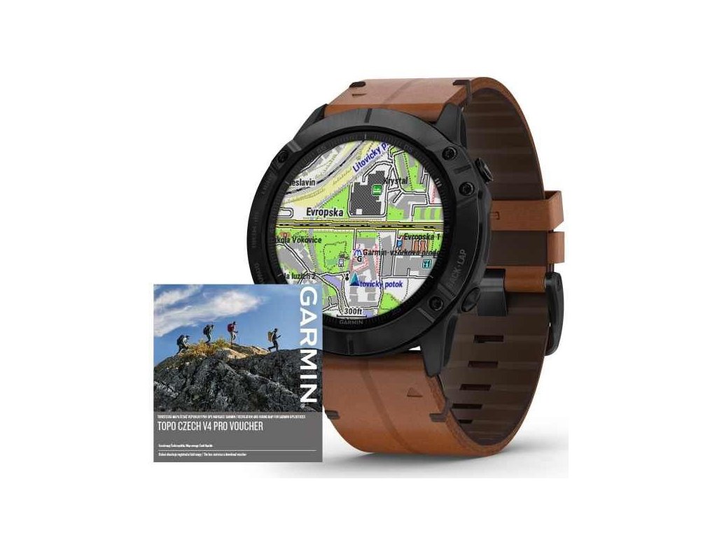 - Hodinky fenix6X Sapphire s hnědým koženým řemínkem