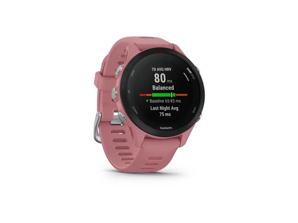Hodinky Forerunner® 255S Music patří k nejlehčím běžeckým hodinkám na trhu. S hmotností 39g skoro zapomenete, že máte hodinky na zápěstí a to jak v průběhu sportování, tak i během spánku.