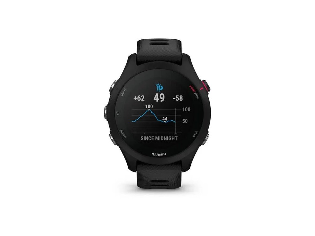 Hodinky Forerunner® 255S Music patří k nejlehčím běžeckým hodinkám na trhu. S hmotností 39g skoro zapomenete, že máte hodinky na zápěstí a to jak v průběhu sportování, tak i během spánku.