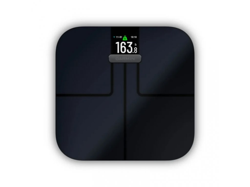 Chytrá váha s měřením tělesných parametrů, automatickým rozpoznáváním uživatele a bezdrátovým přenosem měřených dat do tréninkového deníku Garmin Connect.