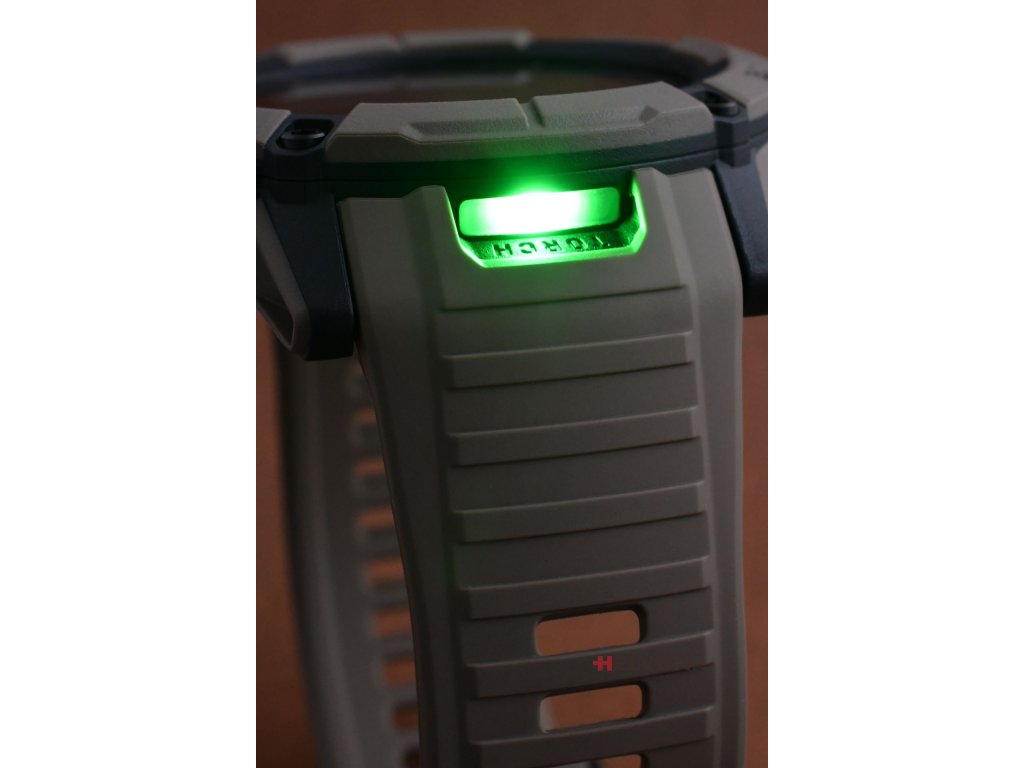 Při slabém osvětlení vás podrží vestavěná svítilna s několika LED diodami, proměnlivou intenzitou a zábleskovým světlem, které se sladí s vaším tempem.V režimu zeleného světla budete mít navíc v noci přehled o svém okolí.
