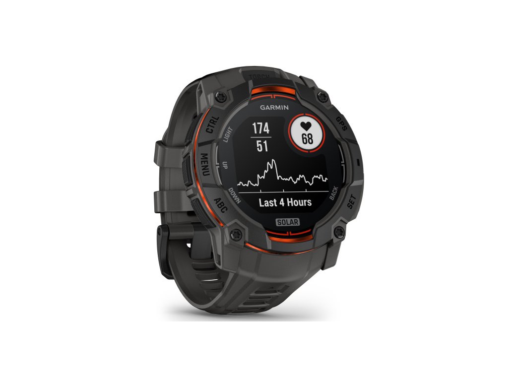 Hodinky Instinct 3 měří srdeční tep ze zápěstí ve dne i v noci4 a data ukládají do paměti hodinek a do aplikace Garmin Connect.