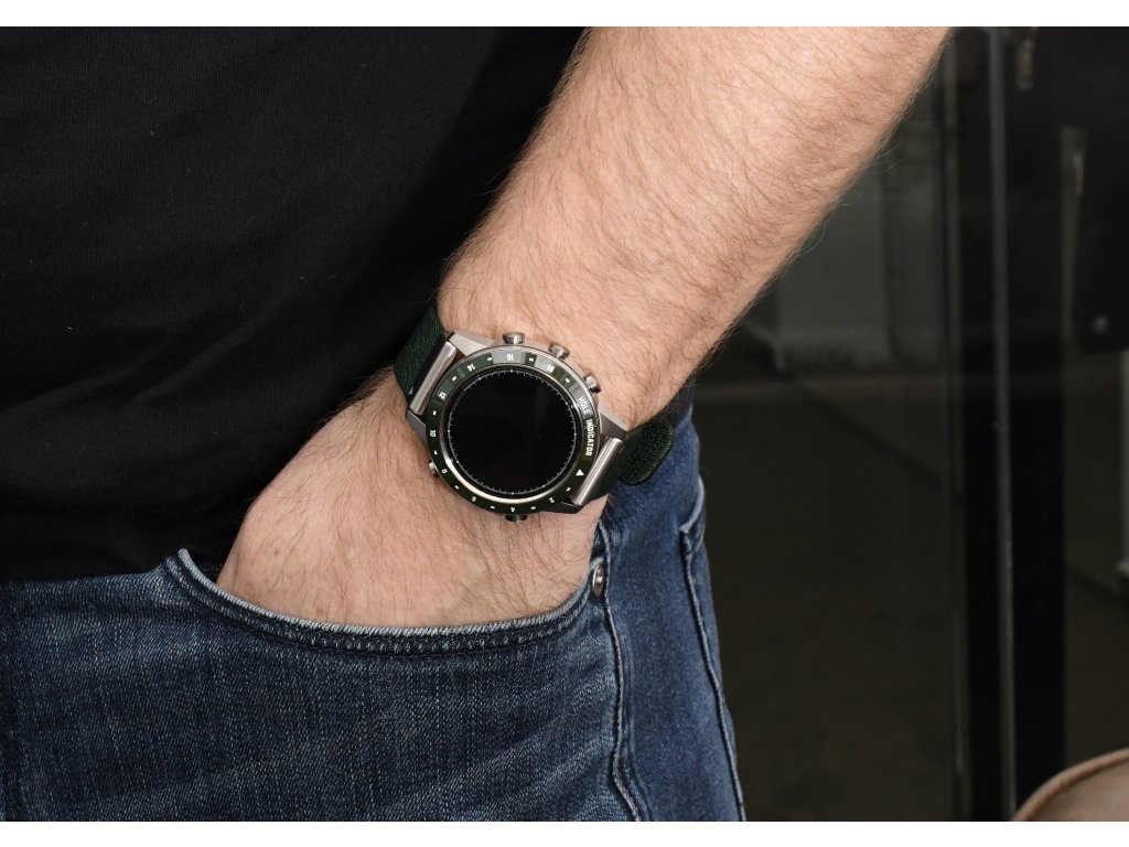 - Hodinky MARQ Golfer se zeleným tkaným nylonovým řemínkem
