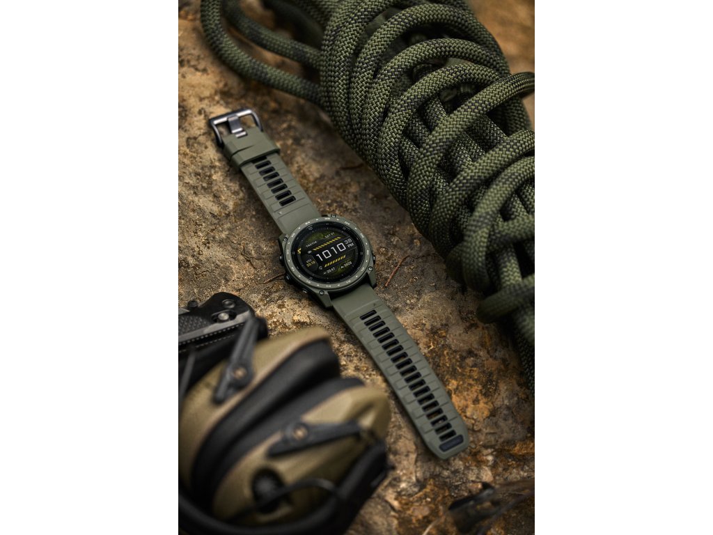 Pokročilé taktické GPS hodinky nabízejí jasný 1,4'' AMOLED displej, titanovou lunetu, safírové sklíčko a vylepšené uživatelské rozhraní. Hodinky splňují americké vojenské normy odolnosti proti teplotám, nárazům a vodě.