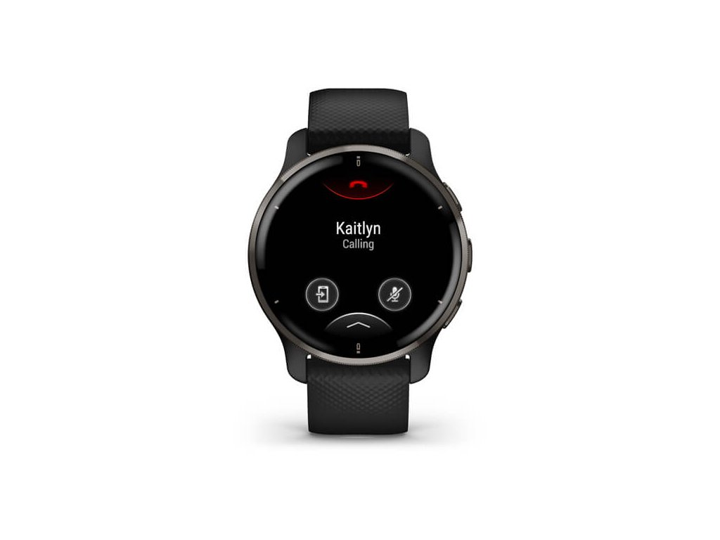 Pro přijetí a vyřízení hovoru už není potřeba vytahovat telefon z kapsy nebo kabelky. Po propojení s kompatibilním chytrým telefonem můžete uskutečňovat hovory přímo z hodinek. K psaní sms zpráv, kladení otázek nebo ovládání chytré domácnosti vám hodinky Venu® 2 Plus umožní využívat hlasového asisttenta ze spárovaného telefonu.