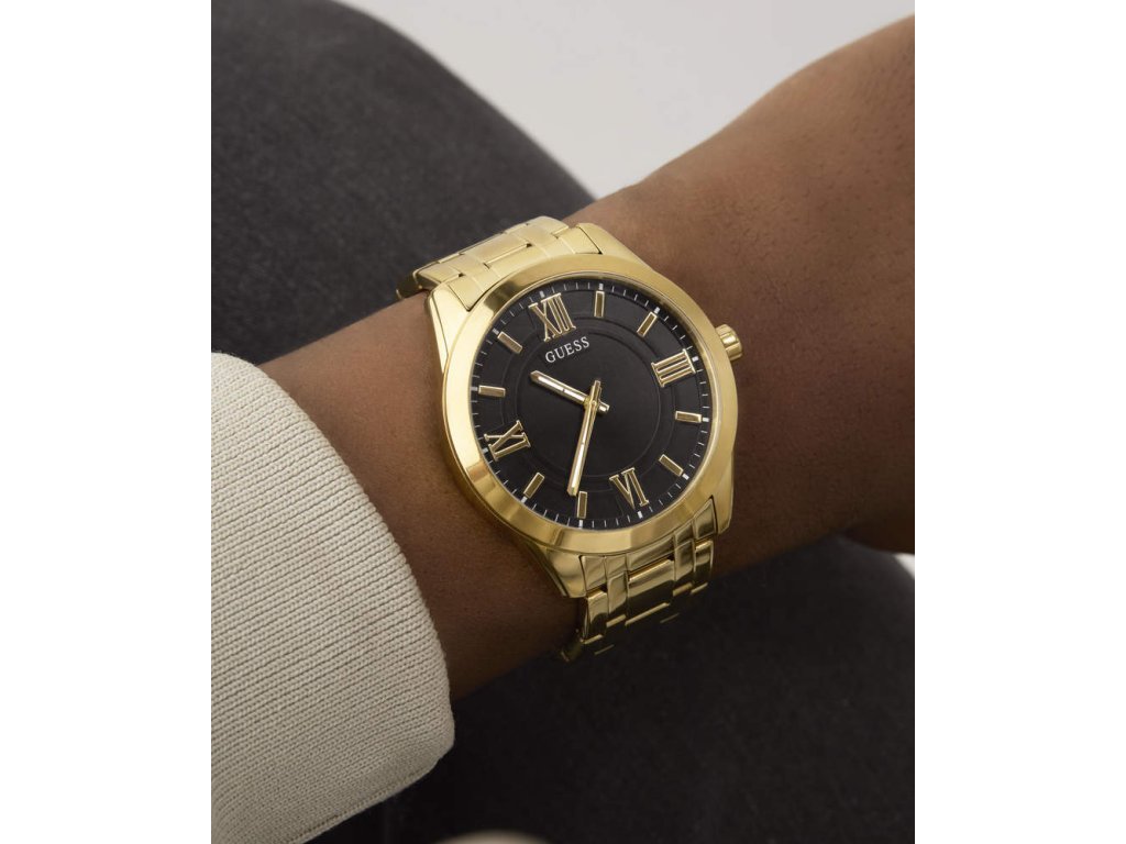 Francouzská elegance a nespoutaná Kalifornie. Mladistvost, smyslnost amerického Západu a důraz na image. Přesně taková je značka Guess, která vznikla v 80. letech jako firma vyrábějící džíny. Sourozenci Marcianovi, pocházející z jihu Francie, vtiskli své kolekci šarm i provokativnost. Časem upoutala pozornost nejen kolekce oblečení, ale také kabelky, obuv nebo šperky. První módní hodinky Guess byly představeny veřejnosti v roce 1983 a mají stejné rysy jako oblečení Guess - jsou nápadné, sexy, originální a vždy inspirované posledními trendy.