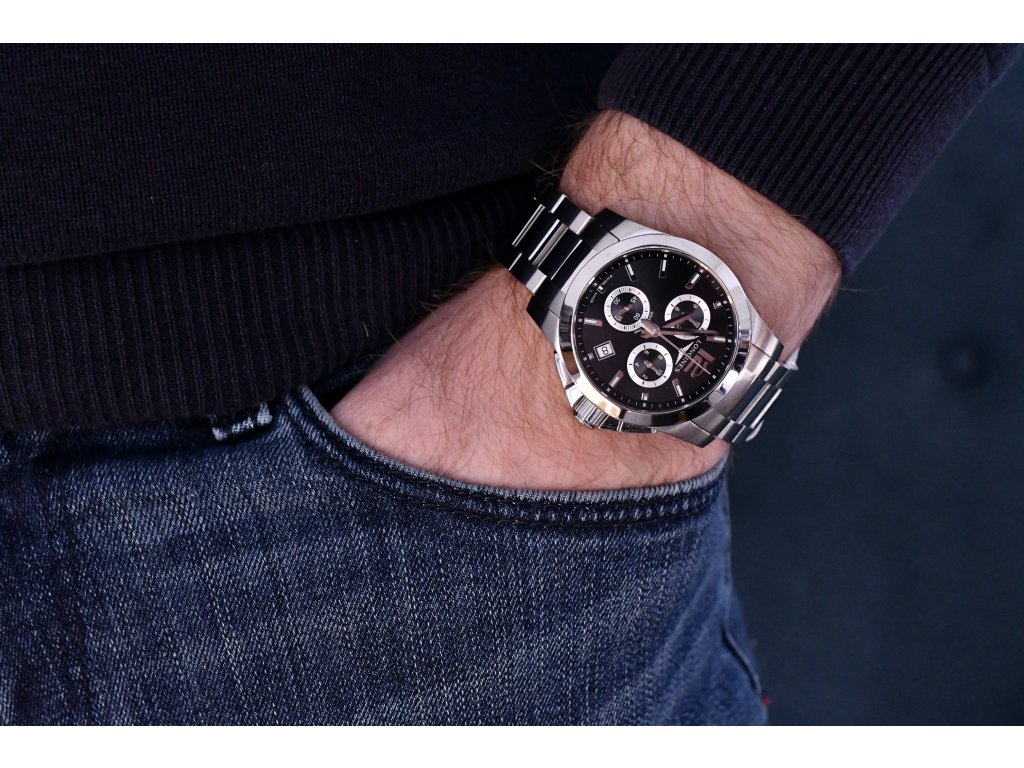 | Funkce: | Datum, Stopky / Chronograf, Šroubovací korunka, Ukazatel životnosti baterie / E.O.L. |