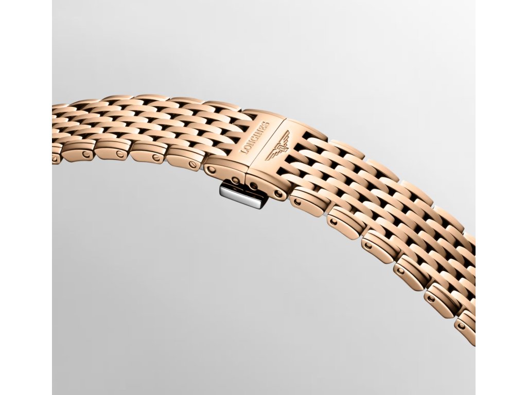 La Grande Classique de Longines Dámské elegantní hodinky. Hodinky mají quartzový strojek (baterie), safírové sklo, vodotěsnost 30 m/3 bary. Perleťový číselník je zdoben 12 brilianty na pozici číslic. Pouzdro je kulaté, průměr pouzdra je 29 mm, pouzdro i pásek jsou vyrobené z ušlechtilé nerez oceli zlacené tvrdým PVD zlacením.