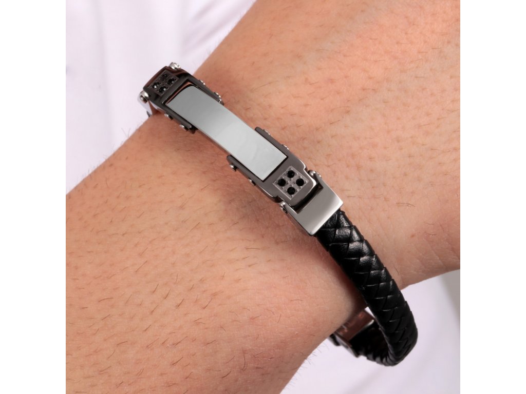 Krásný pánský náramek od luxusní italské značky Morellato z řady Moody je vyroben z chirurgické oceli ve stříbrném a černém provedení a z kvalitní proplétané kůže. Náramek je ozdoben decentními černými krystaly a má pevné zapínání. Originální krabička a certifikát o pravosti šperku je součástí balení.