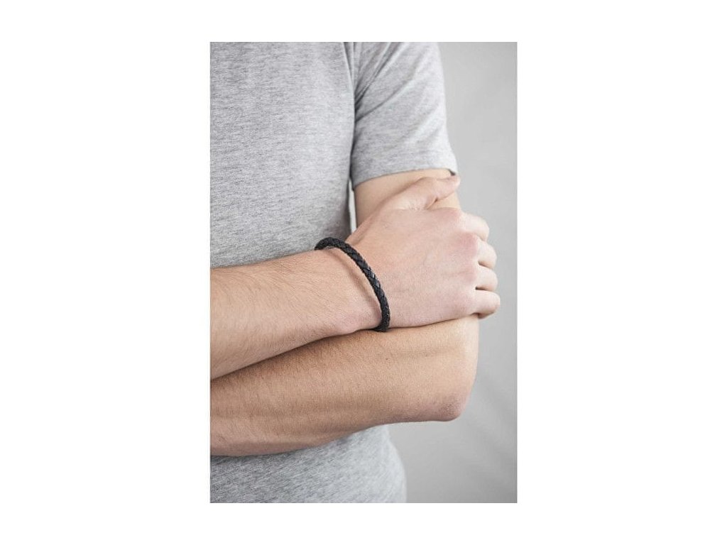 Pánský kožený náramek je vyrobený z tmavě hnědé propletené kůže. Ocelové zapínání s jemným nápisem Fossil má stříbrnou barvu, je na zacvaknutí a jeden dílek jde oddělit, délku si můžete zkrátit.