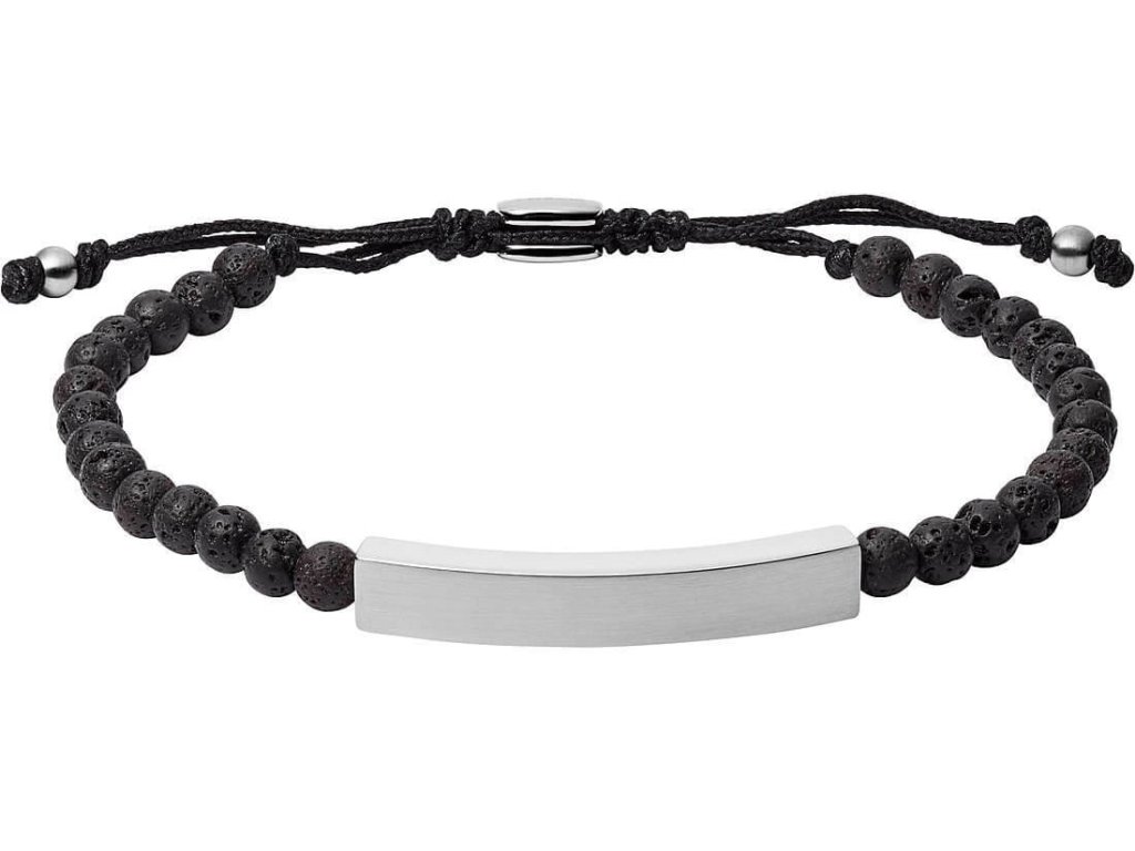 Pánský náramek Fossil kombinovaný ušlechtilou ocelí s lávovými kameny. Uzavírá se černou polyesterovou šnůrou, která umožňuje nastavení podle vlastní úvahy. Tento decentní náramek je vhodný jako dárek pro moderního muže. Na přání lze gravírovat do spodní i vrchní ocelové části.