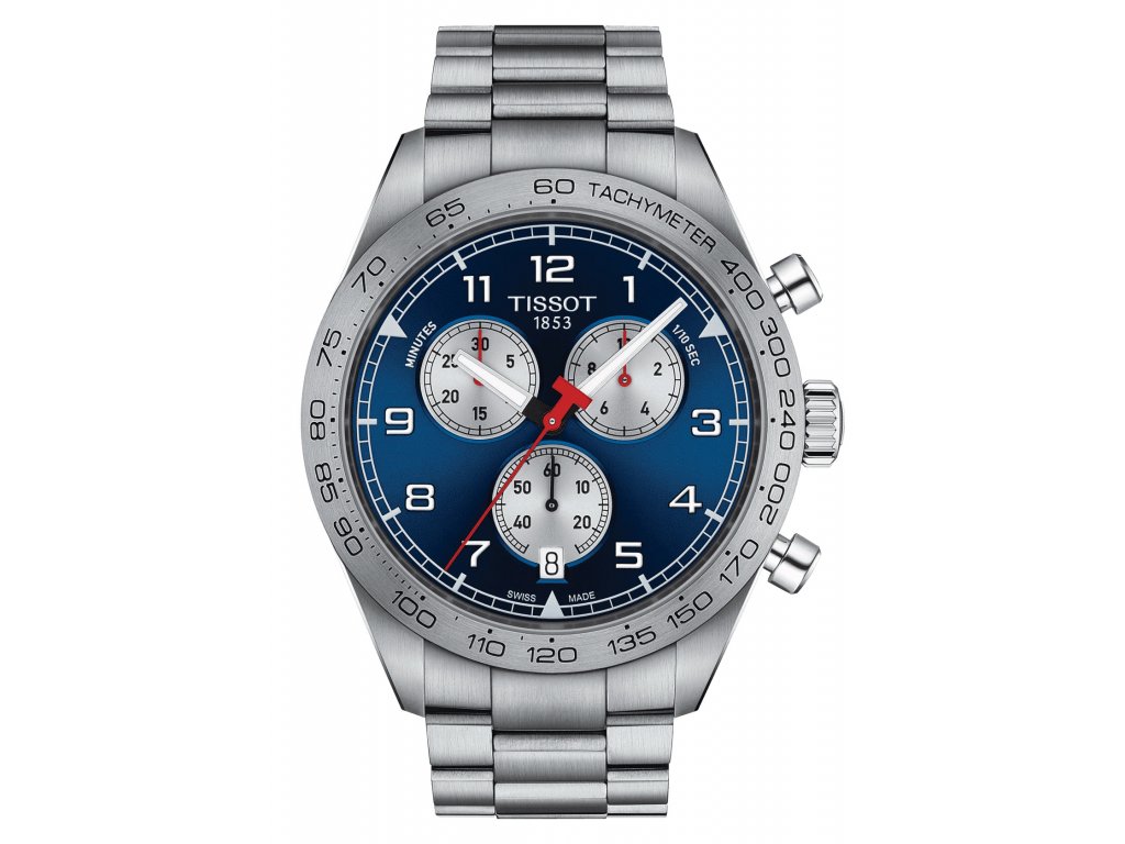Krásné pánské quartzové hodinky švýcarské výroby od značky Tissot z řady PRS 516 jsou vyrobeny z ušlechtilé oceli a zaujmou především svým velmi povedeným designem inspirovaným motorsportem z 60.let a předešlými modely od této značky. Svým průměrem 45 mm a robustním pouzdrem se řadí mezi větší pánské modely a nadchnou každého sportovně založeného muže. Modrý ciferník s chronografy nabízí jak jinak funkci stopek, ale i ukazatel data na pozici čísla "6" a je chráněn velmi odolným safírovým sklíčkem. Kolem dokola je umístěna pevná luneta s tachymetrickou stupnicí. Vodotěsnost modelu je 100 M - plavání.