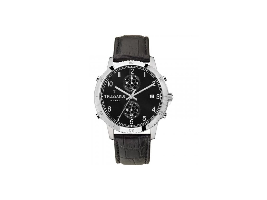 Krásné pánské quartzové hodinky od italské módní značky Trussardi z řady T-Style zaujmou každého muže, který chce být trendy. Pouzdro hodinek je vyrobeno z nerezové oceli a svým průměrem pouzdra 44 mm se řadí mezi středně velké pánské modely. Černý ciferník nabízí ukazatel data na pozici čísla "3" a stopky. Celkový vzhled hodinek doplňuje kožený černý řemínek s klasickou sponou. Vodotěsnost modelu je 50 M a hodinky tak snesou běžný styk s vodou jako je mytí rukou a déšť.