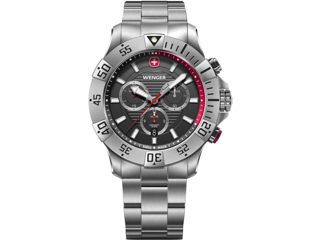 Pánské sportovní hodinky švýcarské výroby od značky Wenger z řady Sea Force jsou již čtvrtou generací této modelové řady. Model Wenger Sea Force Chrono příchází s drobnými úpravami jako je umístění znaku Wenger ( Švýcarského kříže ) na pozici čísla "12" a barevné zvýraznění na vnitřní lunetě pro prvních dvacet minut. Hodinky tak vynikají sportovním vzhledem, ale i skvělou spolehlivostí.